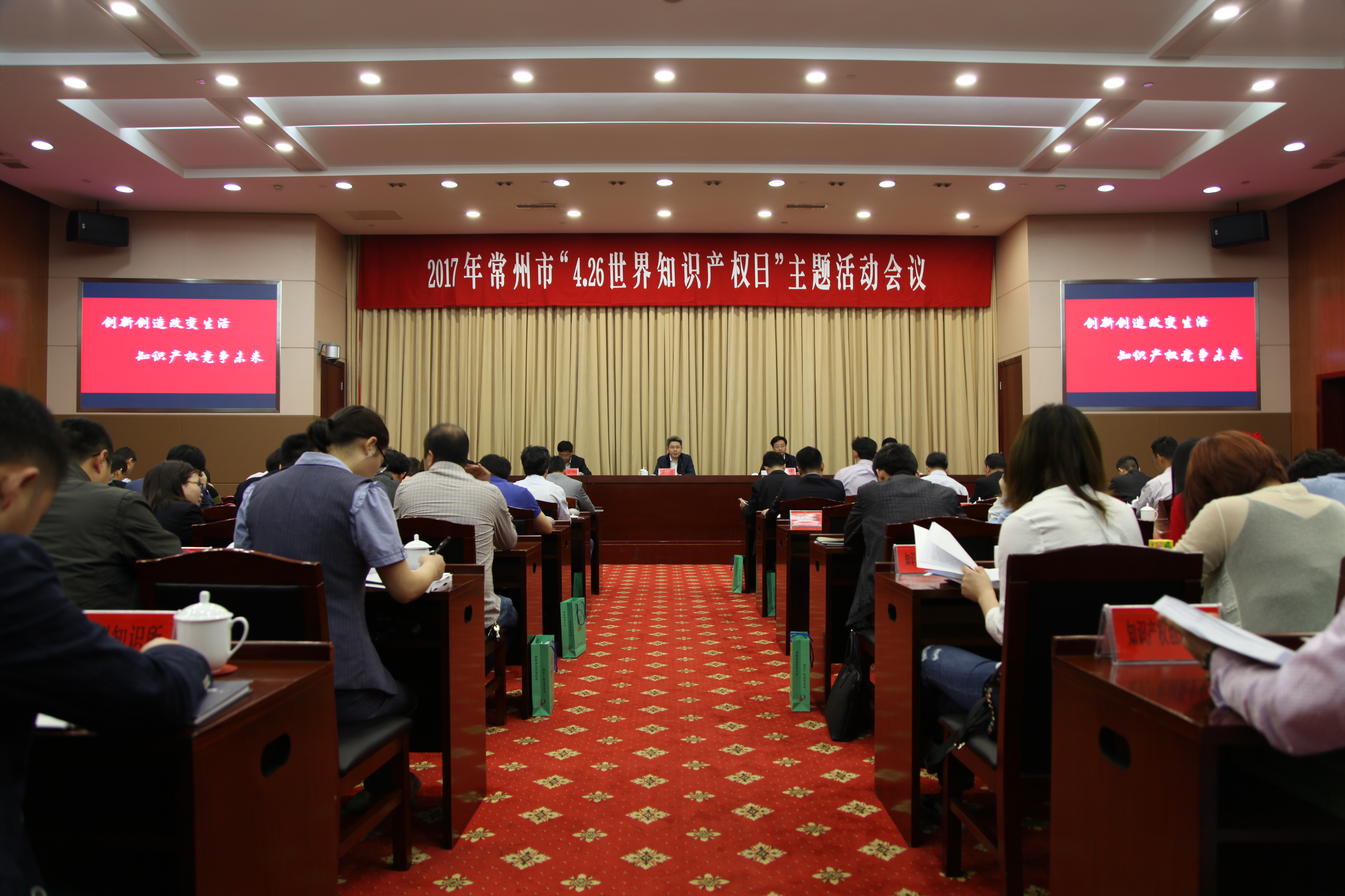 4月25日,常州市知识产权工作者欢聚一堂,共同庆祝“世界知识产权日”,召开“4•26世界知识产权日”主题活动会议。常州市副市长梁一波出席会议并讲话。各辖市(区)政府分管领导,科技局(知识产权局)分管负责人,市国家知识产权示范城市建设工作领导小组成员单位分管领导,在常高校分管负责人,国家、省知识产权试点示范园区分管负责人及科技局(知识产权局)分管负责人,市知识产权中介服务机构负责人,知识产权创新企业代表共120余人参加了此次活动。